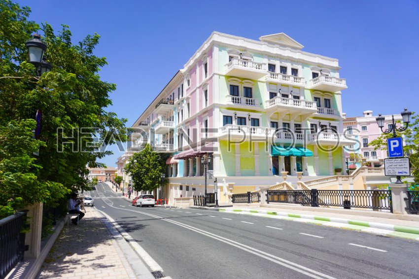 Street in porto Arabia in Pearl overlooking the fairmont luxury resort In Doha, Qatar