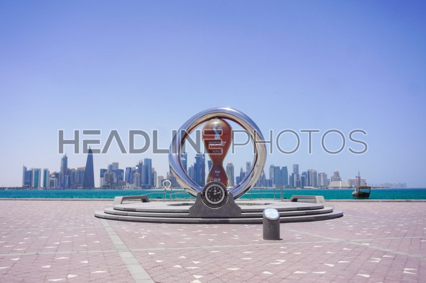 2022 FIFA World Cup countdown clock on Doha's corniche In Doha, Qatar