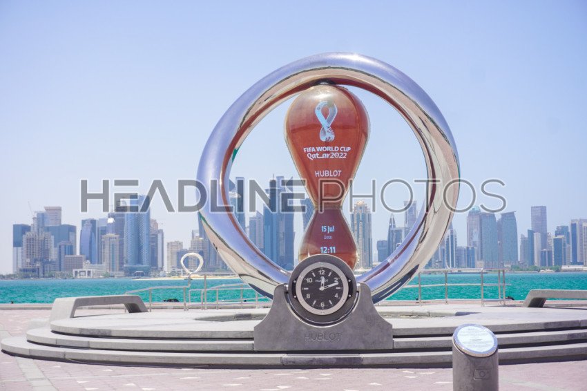 2022 FIFA World Cup countdown clock on Doha's corniche In Doha, Qatar