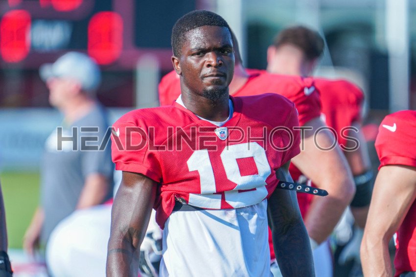 Tampa, Florida, USA, July 29, 2024, Tampa Bay Buccaneers' Rakim Jarrett #18 during a Training Camp at Advent Health Training Center . (Photo Credit: Marty Jean-Louis)