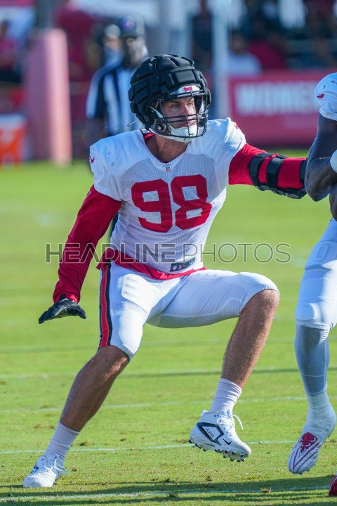 Tampa, Florida, USA, August 1, 2024, Tampa Bay Buccaneers player Anthony Nelson #98 during a Training Camp at Advent Health Training Center . (Photo Credit: Marty Jean-Louis)