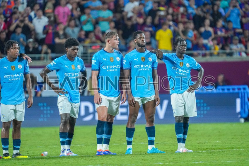 Orlando, Florida, USA, July 30, 2024, Manchester City FC players watch the panlty shootout during the 2024 FC Series at Camping World Stadium. (Photo Credit: Marty Jean-Louis)
