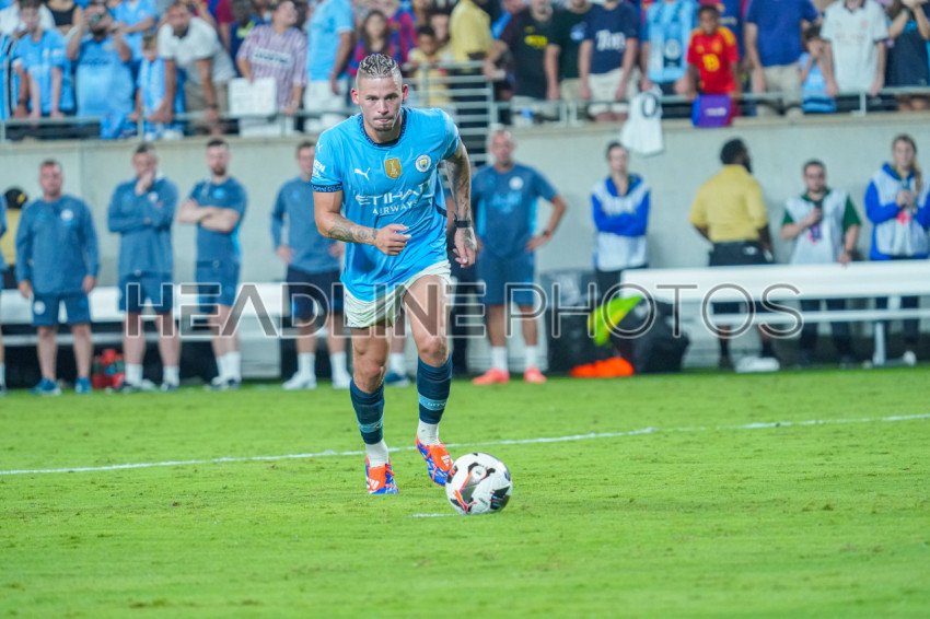 Orlando, Florida, USA, July 30, 2024, Manchester City FC player Kalvin Phillips #4 shoots a penalty kick during the 2024 FC Series at Camping World Stadium. (Photo Credit: Marty Jean-Louis)