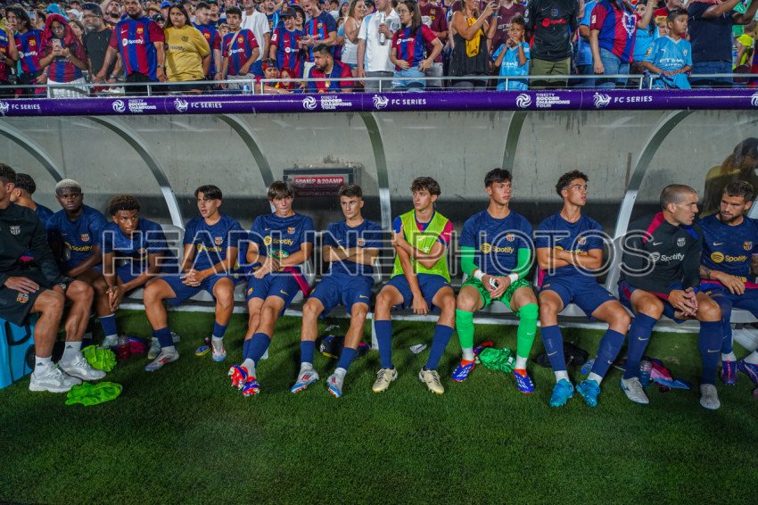 Orlando, Florida, USA, July 30, 2024, FC Barcelona subsctitutes sitting at the bench during the 2024 FC Series at Camping World Stadium. (Photo Credit: Marty Jean-Louis)