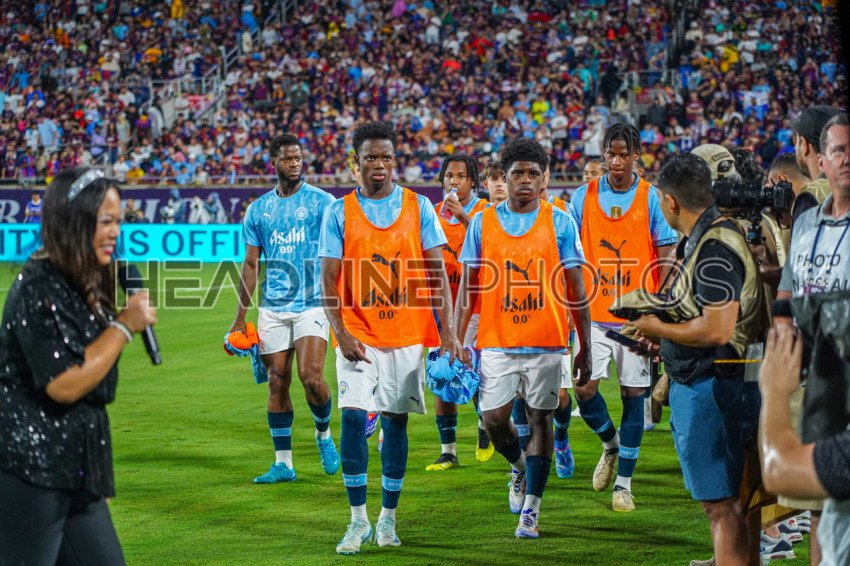 Orlando, Florida, USA, July 30, 2024, Manchester City FC substitute heading to the bench during the 2024 FC Series at Camping World Stadium. (Photo Credit: Marty Jean-Louis)