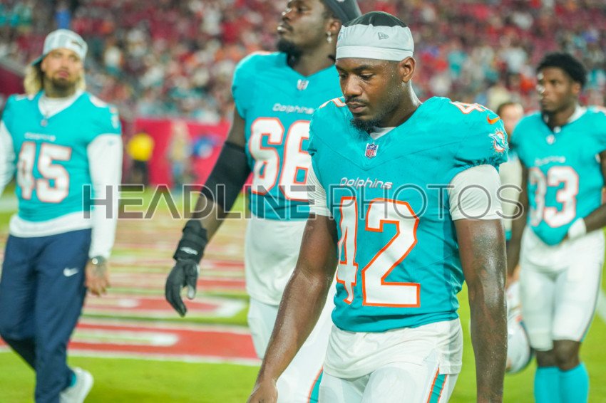 Tampa Bay, Florida, USA, August 33, 2024, Miami Dolphins player Je'Quan Burton #42 at Raymond James Stadium. (Photo Credit: Marty Jean-Louis)