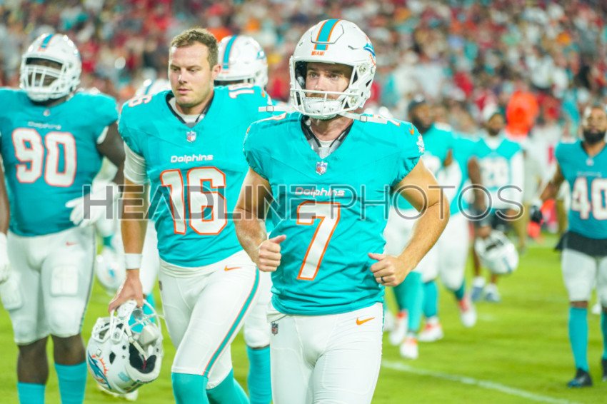Tampa Bay, Florida, USA, August 33, 2024, Miami Dolphins player Jason Sanders #7 at Raymond James Stadium. (Photo Credit: Marty Jean-Louis)