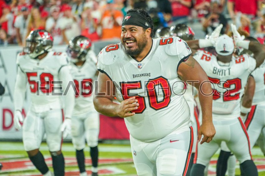 Tampa Bay, Florida, USA, August 33, 2024, Tampa Bay Buccaneers player Vita Vea #50 celebrate after a touchdown at Raymond James Stadium. (Photo Credit: Marty Jean-Louis)