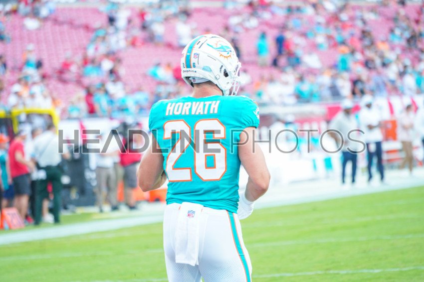 Tampa Bay, Florida, USA, August 33, 2024, Miami Dolphins player Zander Horvath #26 at Raymond James Stadium. (Photo Credit: Marty Jean-Louis)