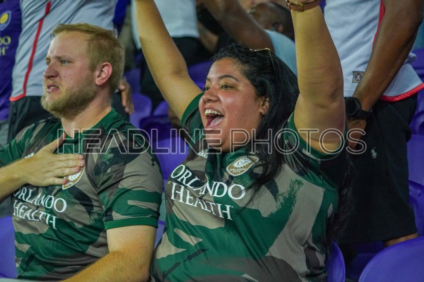 Orlando, Florida, USA, August 31, 2024, Orlando City fans celebrate win at Exploria Stadium (Photo Credit: Marty Jean-Louis)