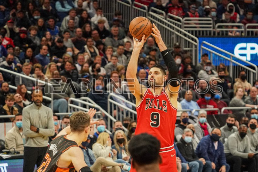Orlando, Florida, USA, January 23, 2022, Chicago Bulls Center Nikola Vucevic #9 shoots a three point shot at the Amway Center. (Photo Credit: Marty Jean-Louis)