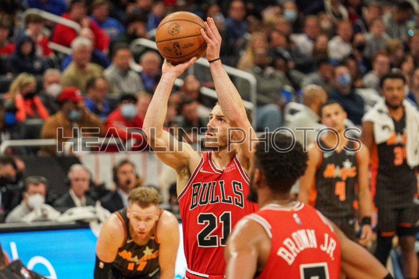 Orlando, Florida, USA, January 23, 2022, Chicago Bulls face Guard Matt Thomas #21 shoots a free throw during the second half at the Amway Center. (Photo Credit: Marty Jean-Louis)