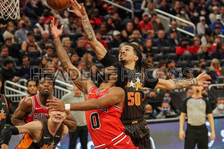 Orlando, Florida, USA, January 23, 2022, Chicago Bulls Guard Coby White #0 attempt to make a layup during the second half at the Amway Center. (Photo Credit: Marty Jean-Louis)