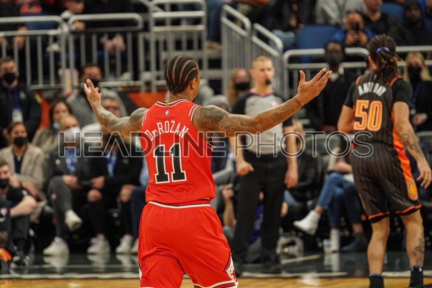 Orlando, Florida, USA, January 23, 2022, Chicago Bulls Forward DeMar DeRozan #11 reacts after making a three point shot during the first half at the Amway Center. (Photo Credit: Marty Jean-Louis)