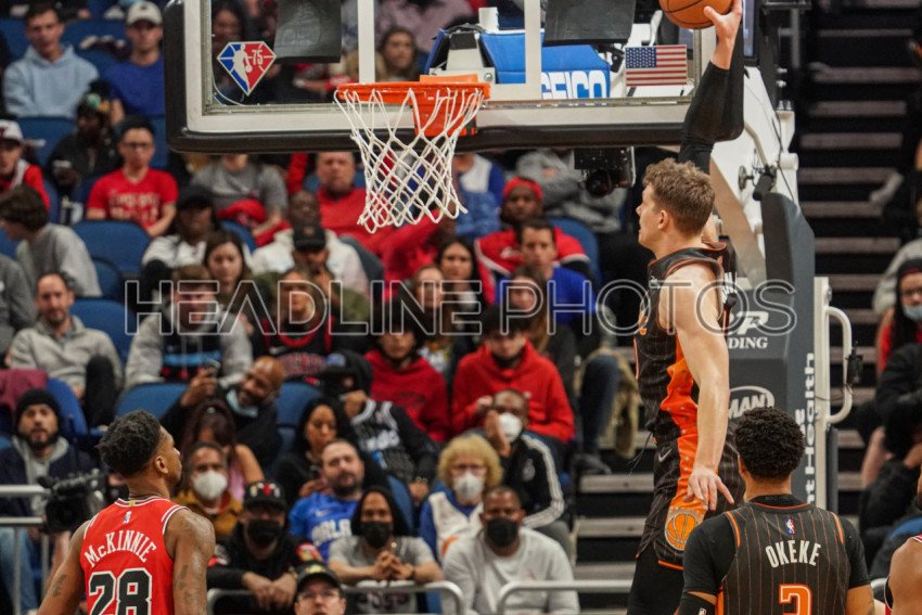 Orlando, Florida, USA, January 23, 2022, Orlando Magic Center Moritz Wagner #21 makes a dunk against the Chicaco Bulls at the Amway Center. (Photo Credit: Marty Jean-Louis)