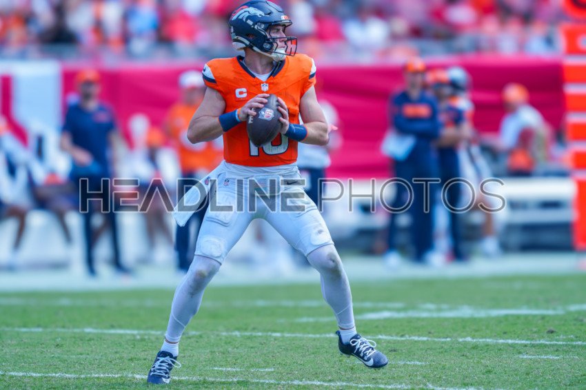 Tampa Bay, Florida, USA, September 22, 2024, Denver Broncos quaterback Bo NIx #10 at Raymond James Stadium. (Photo Credit: Marty Jean-Louis)