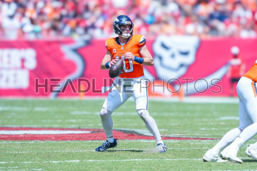 Tampa Bay, Florida, USA, September 22, 2024, Denver Broncos quaterback Bo NIx #10 at Raymond James Stadium. (Photo Credit: Marty Jean-Louis)