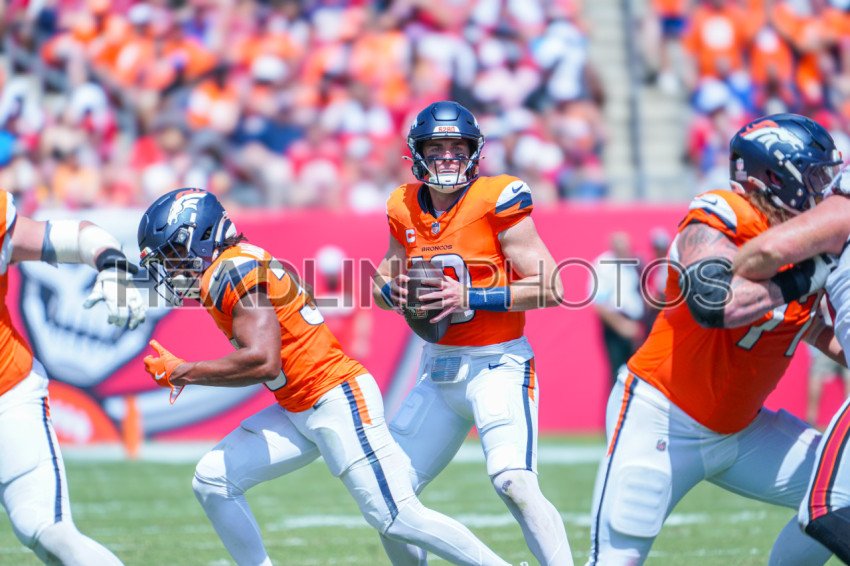 Tampa Bay, Florida, USA, September 22, 2024, Denver Broncos quaterback Bo NIx #10 at Raymond James Stadium. (Photo Credit: Marty Jean-Louis)