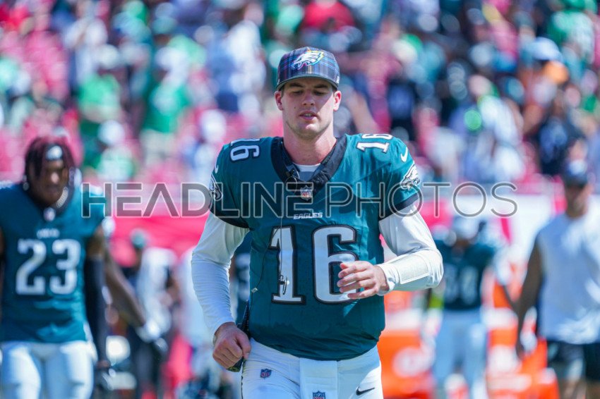 Tampa Bay, Florida, USA, September 29, 2024, Philadelphia Eagles quarterback Tanner McKee #16 at Raymond James Stadium. (Photo Credit: Marty Jean-Louis)