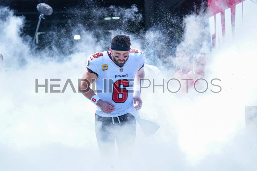 Tampa Bay, Florida, USA, September 29, 2024, Tampa Bay Buccaneers Quarterback Baker Mayfield #6 entering the field at Raymond James Stadium. (Photo Credit: Marty Jean-Louis)