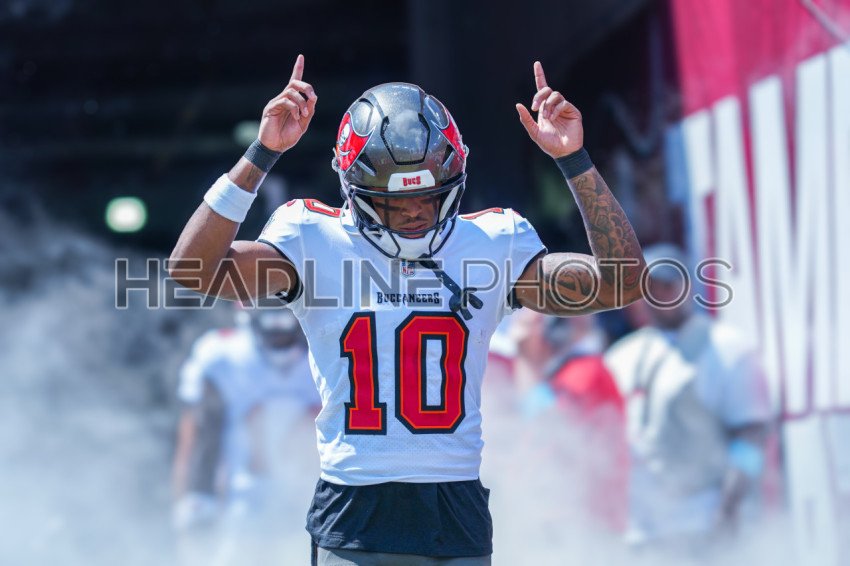 Tampa Bay, Florida, USA, September 29, 2024, Tampa Bay Buccaneers Wide Receiver Trey Palmer #10 entering the field at Raymond James Stadium. (Photo Credit: Marty Jean-Louis)
