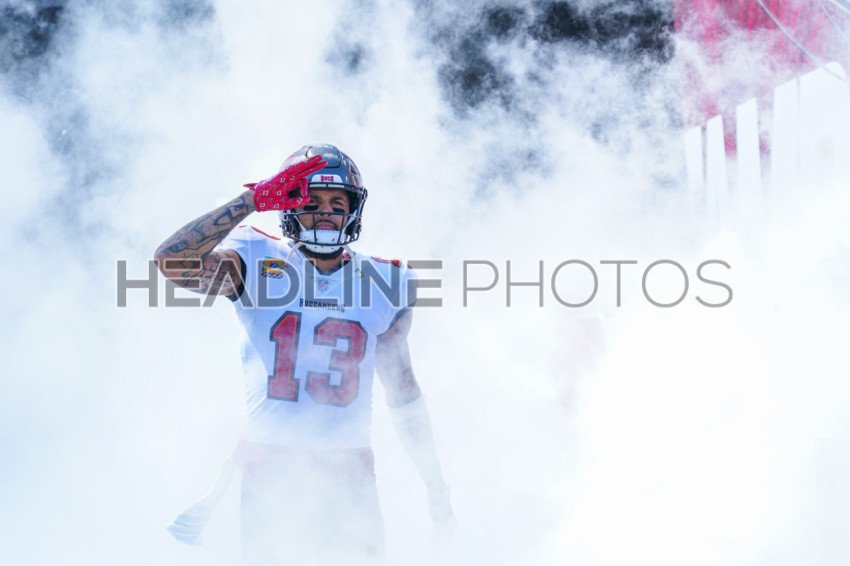 Tampa Bay, Florida, USA, September 29, 2024, Tampa Bay Buccaneers Wide Receiver Mike Evans #13 entering the field at Raymond James Stadium. (Photo Credit: Marty Jean-Louis)