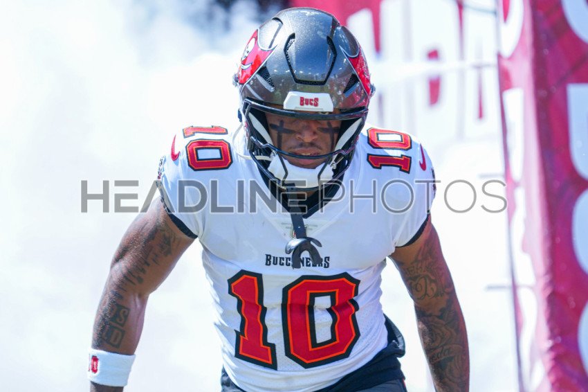 Tampa Bay, Florida, USA, September 29, 2024, Tampa Bay Buccaneers Wide Receiver Trey Palmer #10 entering the field at Raymond James Stadium. (Photo Credit: Marty Jean-Louis)