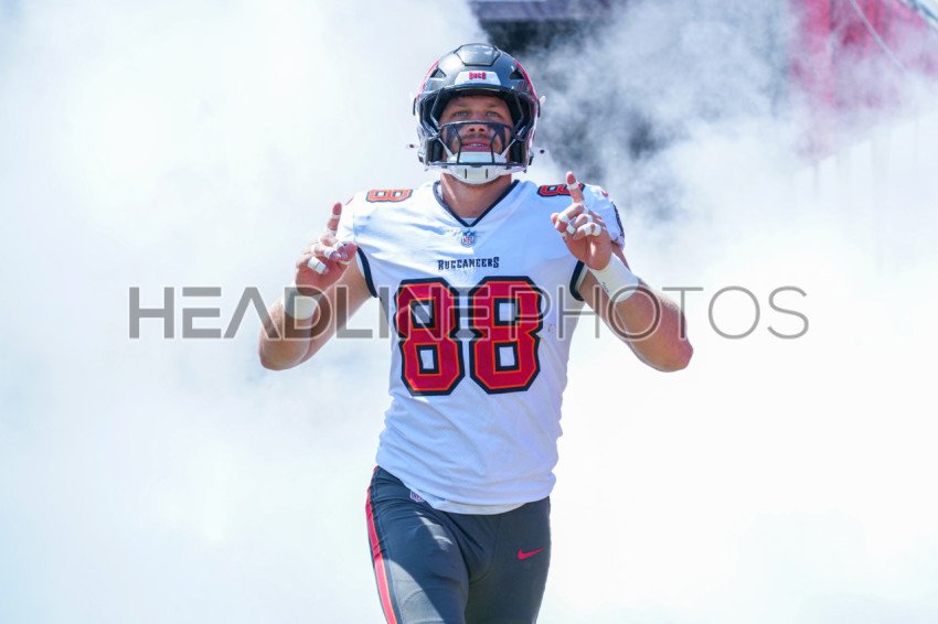 Tampa Bay, Florida, USA, September 29, 2024, Tampa Bay Buccaneers Tight End Cade Otton #88 entering the field at Raymond James Stadium. (Photo Credit: Marty Jean-Louis)