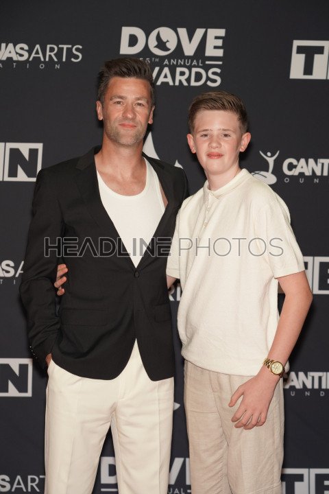 Nashville, Tennessee, USA, October 1, 2024. Ben Fielding with his son At the Red carpet during the 55th Annual GMA Dove Awards at Lipscomb University Allen Arena (Photo Credit: Marty Jean-Louis)