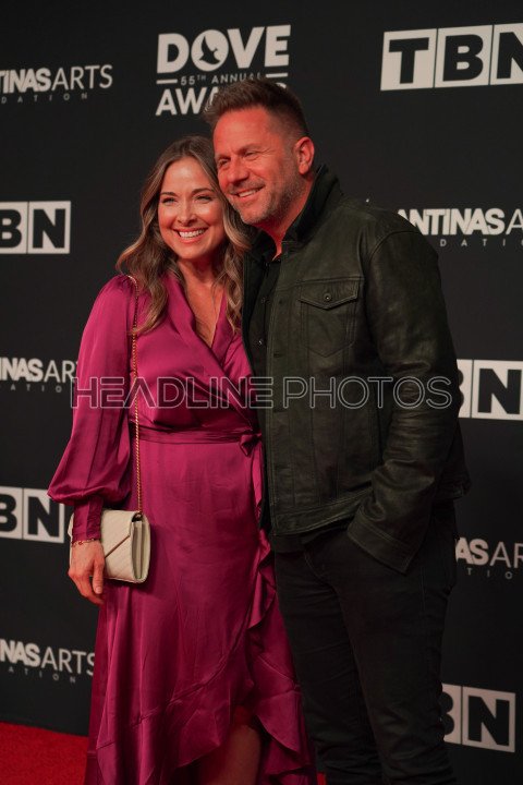 Nashville, Tennessee, USA, October 1, 2024. Aaron Benward and Kenda BenwardAt the Red carpet during the 55th Annual GMA Dove Awards at Lipscomb University Allen Arena (Photo Credit: Marty Jean-Louis)