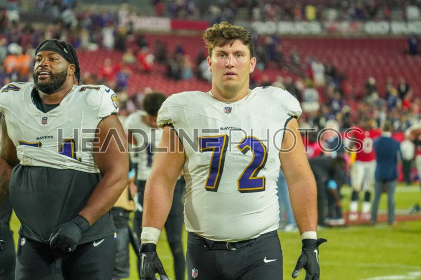 Tampa Bay, Florida, USA, October 21, 2024, Baltimore Ravens player Andrew Vorhees #72 at Raymond James Stadium. (Photo Credit: Marty Jean-Louis)