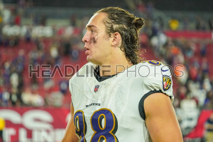 Tampa Bay, Florida, USA, October 21, 2024, Baltimore Ravens player Charlie Kolar #88 at Raymond James Stadium. (Photo Credit: Marty Jean-Louis)
