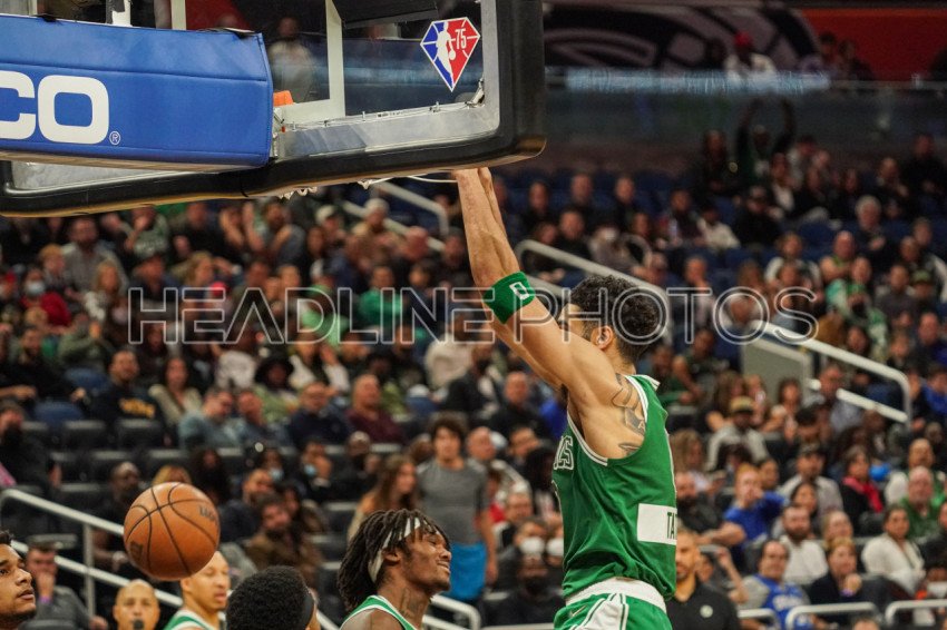 Orlando, Florida, USA, February 6, 2022, Boston Celtics Small Forward Jayson Tatum #0 makes a dunk during the second half at the Amway Center. (Photo Credit: Marty Jean-Louis)