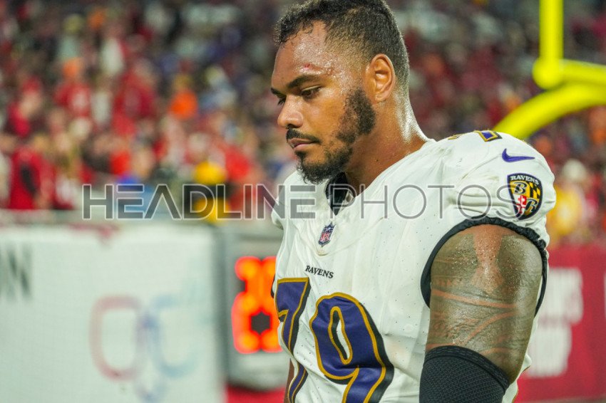 Tampa Bay, Florida, USA, October 21, 2024, Baltimore Ravens player Ronnie Stanley #79 at Raymond James Stadium. (Photo Credit: Marty Jean-Louis)