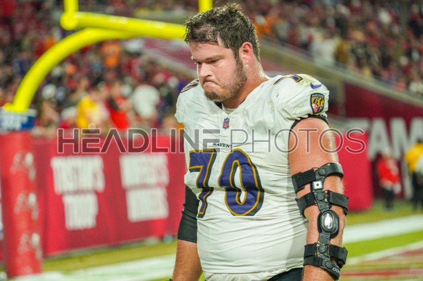 Tampa Bay, Florida, USA, October 21, 2024, Baltimore Ravens player Roger Rosengarten #70 at Raymond James Stadium. (Photo Credit: Marty Jean-Louis)