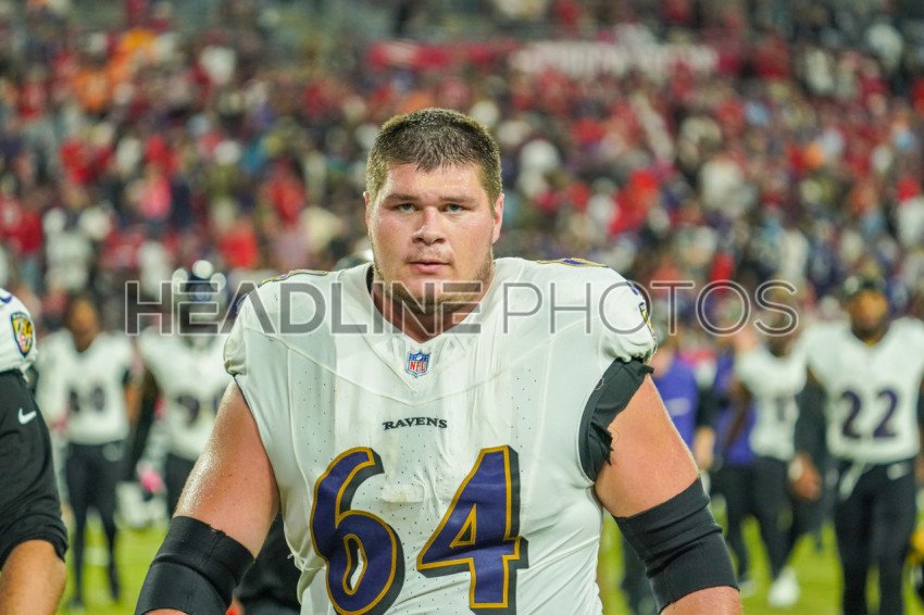 Tampa Bay, Florida, USA, October 21, 2024, Baltimore Ravens player Tyler Linderbaum #64 at Raymond James Stadium. (Photo Credit: Marty Jean-Louis)