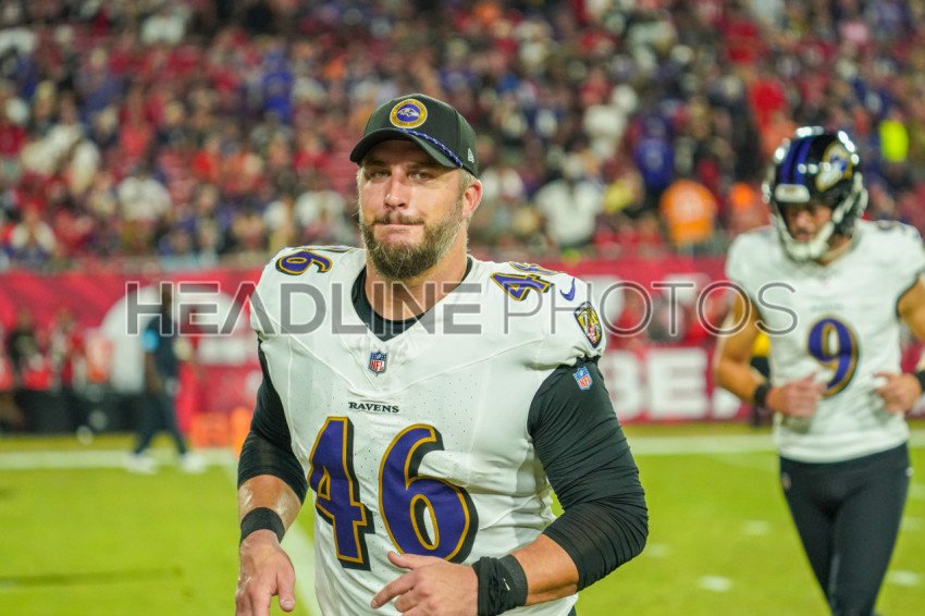 Tampa Bay, Florida, USA, October 21, 2024, Baltimore Ravens player Nick Moore #46 at Raymond James Stadium. (Photo Credit: Marty Jean-Louis)