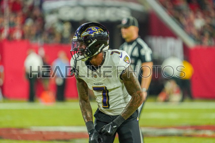 Tampa Bay, Florida, USA, October 21, 2024, Baltimore Ravens player player Rashod Bateman #7 at Raymond James Stadium. (Photo Credit: Marty Jean-Louis)