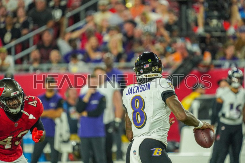 Tampa Bay, Florida, USA, October 21, 2024, Baltimore Ravens quarterback Lamar Jackson #8 at Raymond James Stadium. (Photo Credit: Marty Jean-Louis)