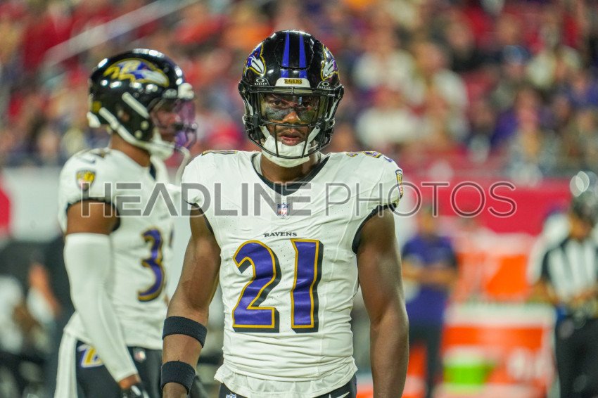 Tampa Bay, Florida, USA, October 21, 2024, Baltimore Ravens player Brandon Stevens #21 at Raymond James Stadium. (Photo Credit: Marty Jean-Louis)