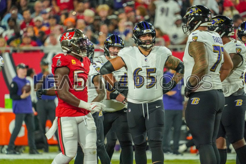 Tampa Bay, Florida, USA, October 21, 2024, Baltimore Ravens player Patrick Mekari #65 at Raymond James Stadium. (Photo Credit: Marty Jean-Louis)