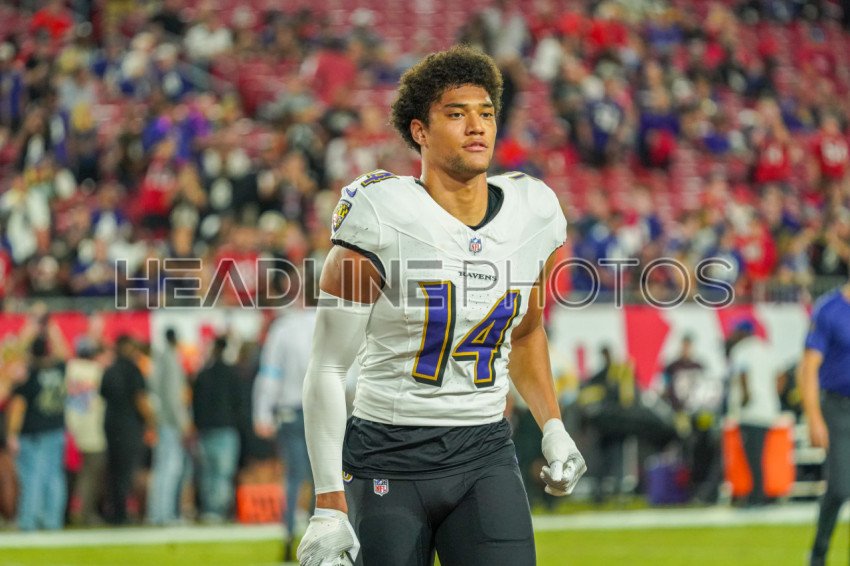Tampa Bay, Florida, USA, October 21, 2024, Baltimore Ravens player Kyle Hamilton #14 at Raymond James Stadium. (Photo Credit: Marty Jean-Louis)