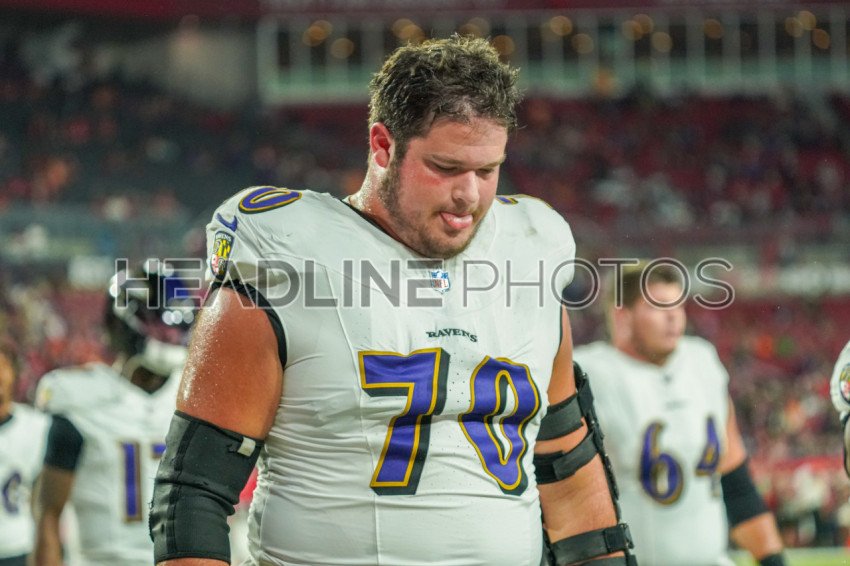 Tampa Bay, Florida, USA, October 21, 2024, Baltimore Ravens player Roger Rosengarten #70 at Raymond James Stadium. (Photo Credit: Marty Jean-Louis)