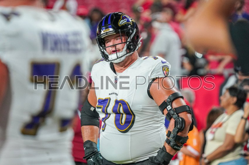 Tampa Bay, Florida, USA, October 21, 2024, Baltimore Ravens player Roger Rosengarten #70 at Raymond James Stadium. (Photo Credit: Marty Jean-Louis)