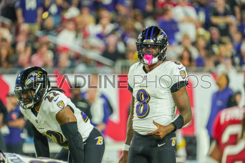 Tampa Bay, Florida, USA, October 21, 2024, Baltimore Ravens quarterback Lamar Jackson #8 at Raymond James Stadium. (Photo Credit: Marty Jean-Louis)