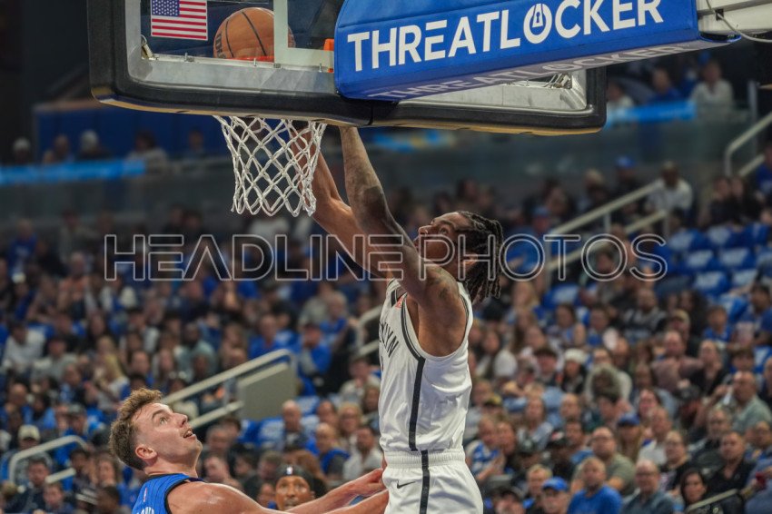 Orlando, Florida, USA, October 25, 2024, Brooklyn Nets player Noah Clowney #21 attempt to make a dunk at the Kia Center. (Photo Credit: Marty Jean-Louis)