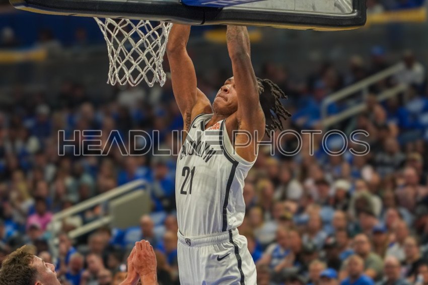 Orlando, Florida, USA, October 25, 2024, Brooklyn Nets player Noah Clowney #21 attempt to make a dunk at the Kia Center. (Photo Credit: Marty Jean-Louis)