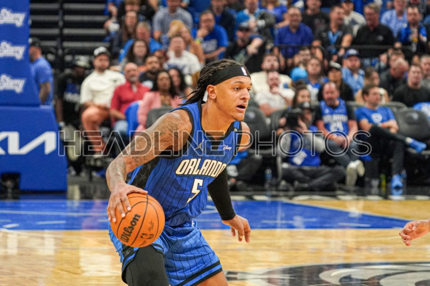 Orlando, Florida, USA, October 25, 2024, Orlando Magic forward Paolo Banchero #5 pushes forward at the Kia Center. (Photo Credit: Marty Jean-Louis)