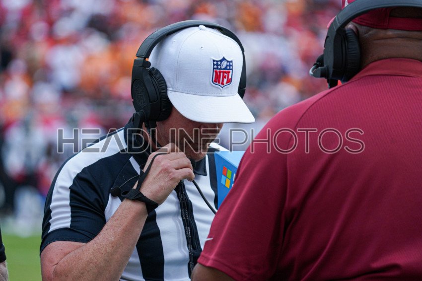 Tampa Bay, Florida, USA, October 27, 2024, One of the Referees for the Atlanta Falcons vs Tampa Bay Buccaneers game reviews a play at Raymond James Stadium. (Photo Credit: Marty Jean-Louis)