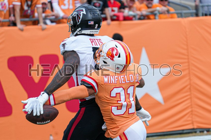 Tampa Bay, Florida, USA, October 27, 2024, Atlanta Falcons tight end Kyle Pitts #8 makes a touchdown at Raymond James Stadium. (Photo Credit: Marty Jean-Louis)